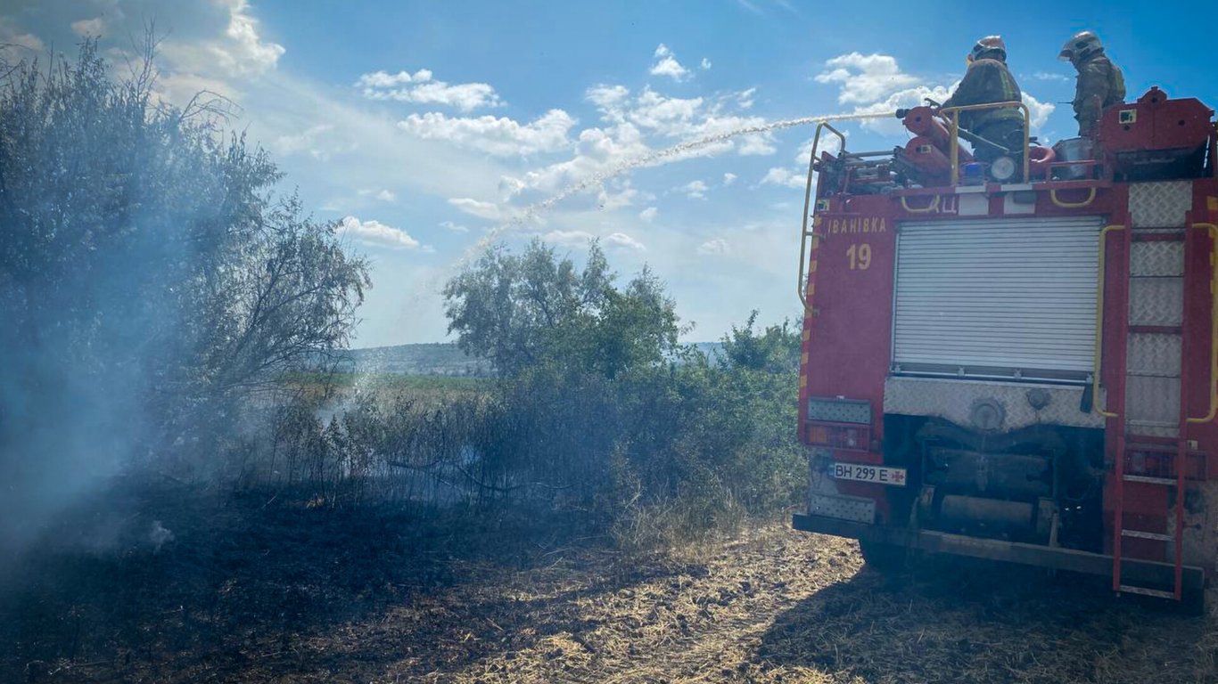 Рятувальники гасять вогонь на Одещині. Фото: ДСНС Одещини