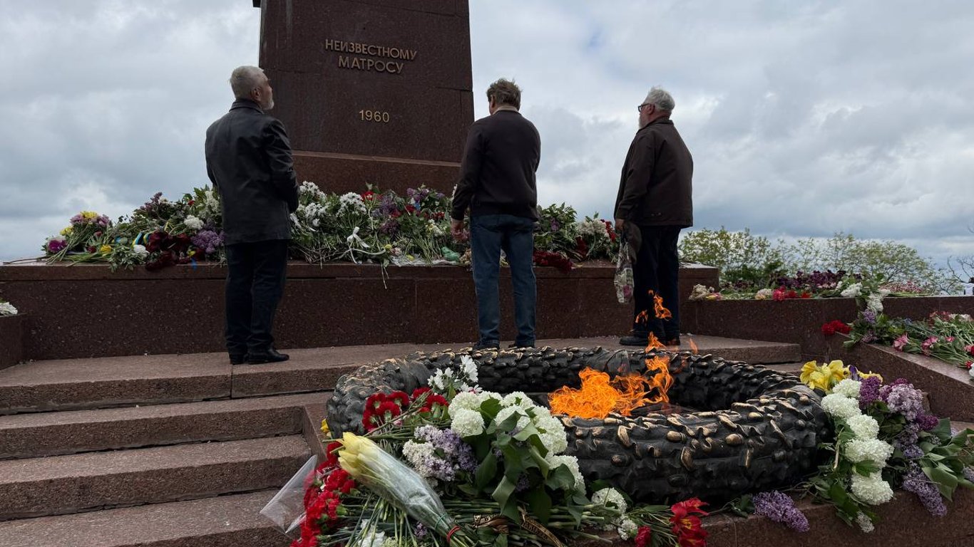Одесити поклали тисячі квітів до обеліска на Алеї Слави та до пам'ятних табличок на честь загиблих партизан. Без букетів не лишилося жодної мармурової дошки.