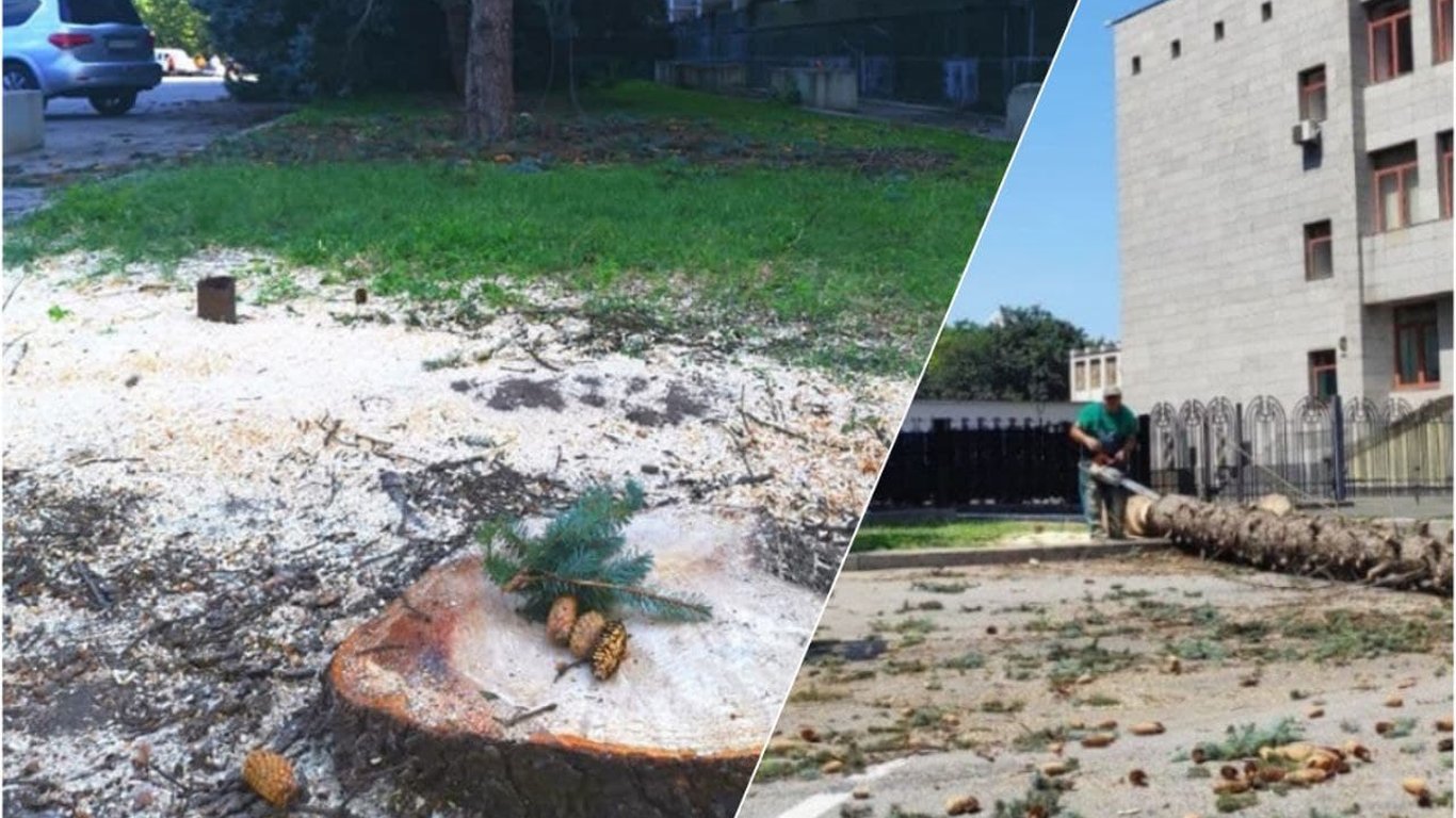 “Дерева не пристосовані до наших кліматичних умов. Попри те, що вони були закріплені бетонними блоками, рівень нахилу деяких ялинок досягав 30 градусів. Була небезпека травмування людей, особливо під час негоди. У жовтні на місці знесених дерев будуть висаджені аналогічні молоді - в спеку нові дерева не приживуться”, - відзначили в облраді.