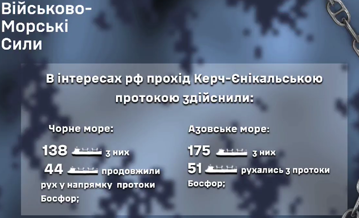 до Азовського моря — 175 суден, з них 51 суден рухались з протоки Босфор;