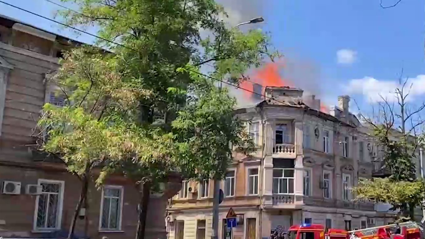 В центрі Одеси горить житловий будинок. Фото: скриншот з відео