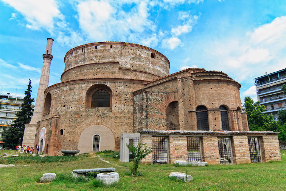 Ротонда святого Георгія, будівля кінця III століття і Тріумфальна арка (IV в) – частина палацового (або похоронного) комплексу імператора Гая Галерія. У XV столітті служила християнською церквою, яка була названа на честь Георгія Побідоносця. В османські часи турки поряд побудували мінарет, і майже чотири століття в храмі була мечеть.
