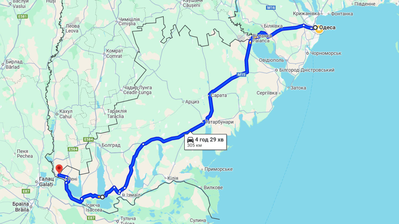 Сьогодні, щоб дістатися до Румунії, теж потрібно постояти у чергах. Наразі на міжнародній трасі М-18 на півдні Одеської області спостерігаються затори біля Сарати та у межах села Холмське. Подорож до дунайського кордону триватиме сьогодні майже п'ять годин. Також є альтернативний маршрут, який майже повністю пролягає через територію Молдови.