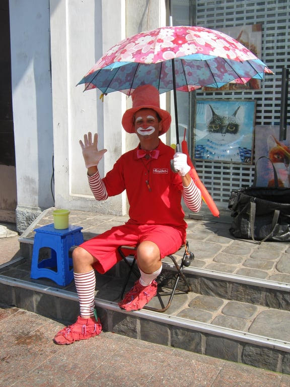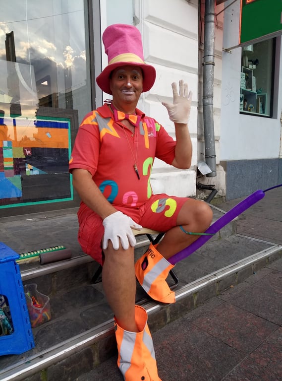 Клоун Лін - людина, яка вітається словом “Бонжур” з кожним, хто проходить повз. Побачити його можна на розі Катерининської вулиці і однойменної площі. Повне його ім'я знають тільки найрідніші люди. Нам він сказав: “називайте мене просто Лін”. Цей псевдонім він собі придумав сам ще у 2000 році, коли був на гастролях у Франції. Взагалі клоун Лін багато де був, він об’їхав десятки країн.