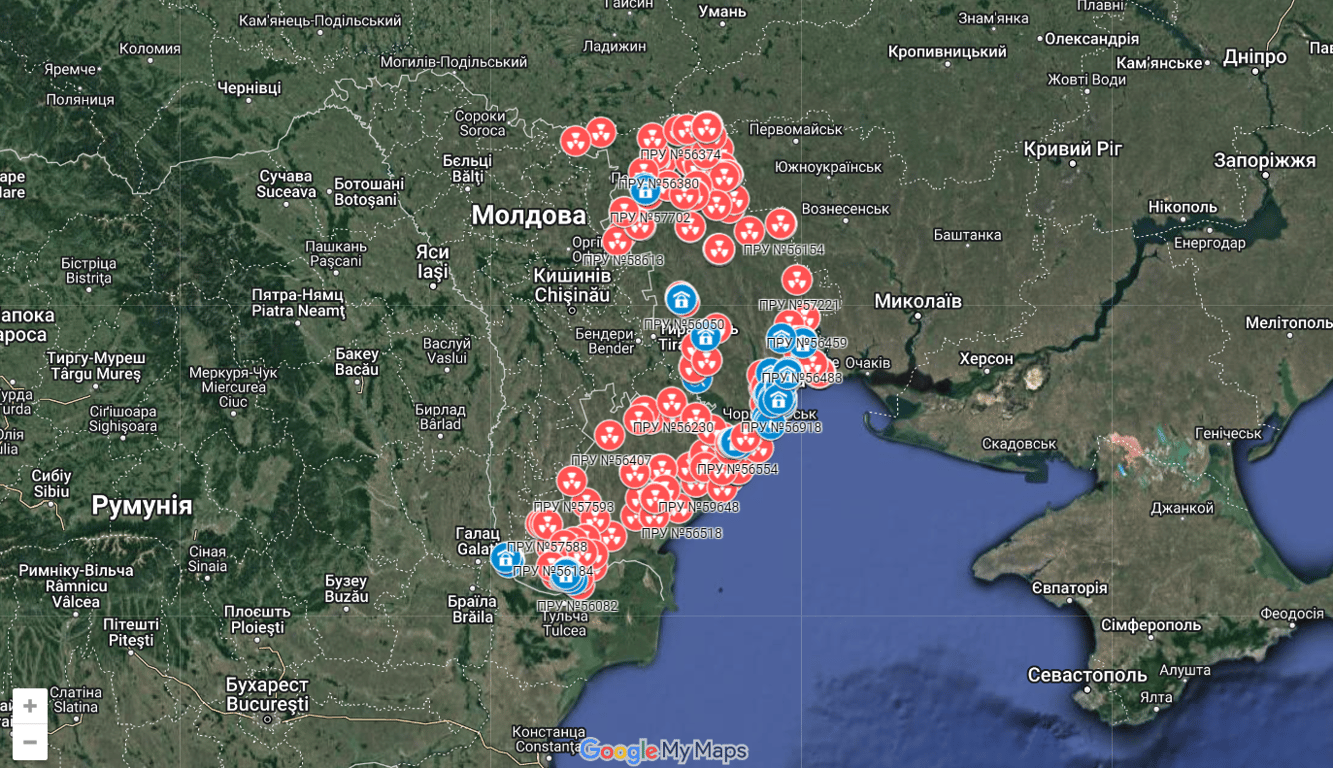 Карта укриттів в Одеській області. Фото: скріншот