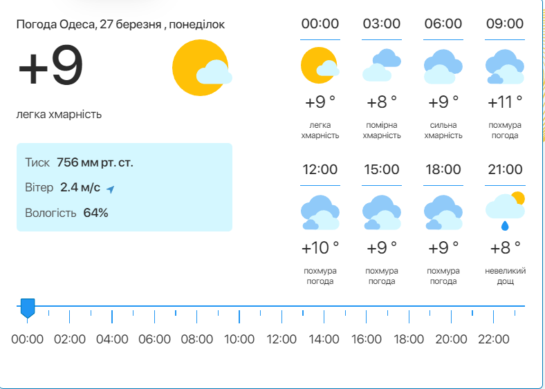 У понеділок, 27 березня, на сході, Карпатах та на лівобережній частині в України очікують дощі, місцями з мокрим снігом. Температура повітря вдень буде коливатися в діапазоні +9...+17 градусів.