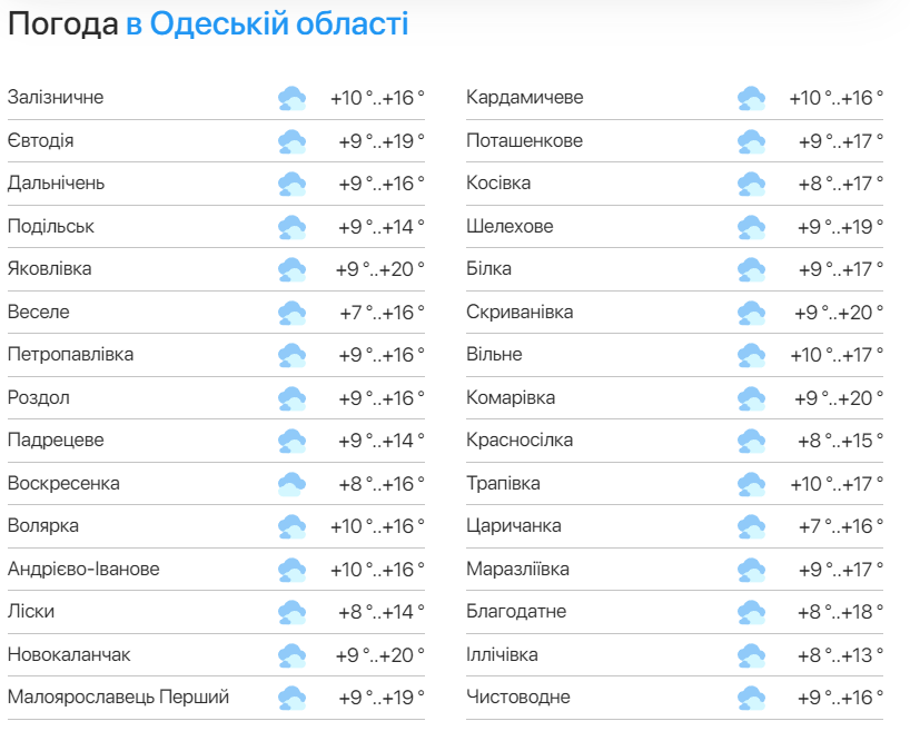 Температура вночі 4-6°С тепла, вдень 11-13°С тепла.