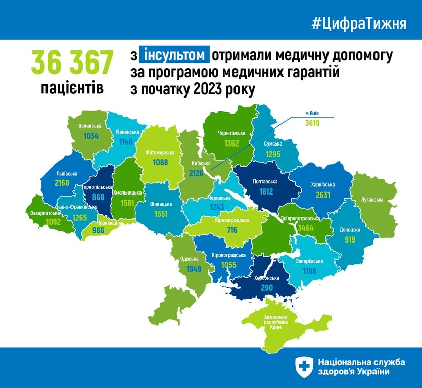 Кількість пацієнтів з інсультом по областях України. Фото: НСЗУ