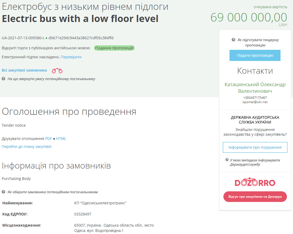 13 липня КП ”Одесміськелектротранс” оголосило тендер на закупівлю ще шістьох нових електробусів з низькою підлогою і кондиціонерами. Підприємство готове заплатити за це 69 мільйонів гривень.
