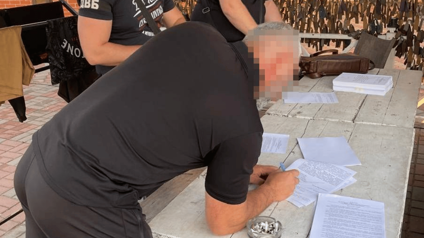 Підозрюваний заповнює документи. Фото: ГУНП в Одеській області