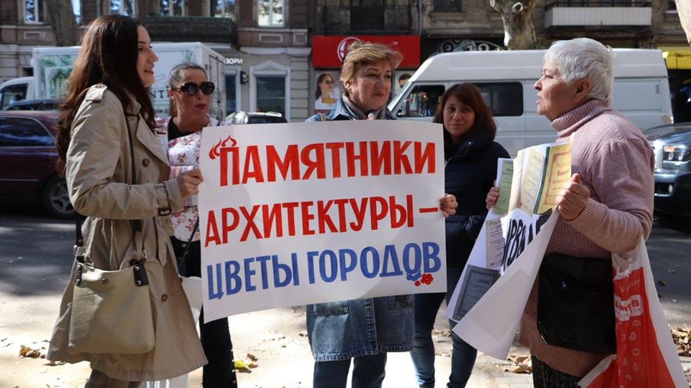 Мешканці Одеси принесли квіти та подарували звичайним працівникам на будівництві, а також роздавали брошури й просили припинити знищення історичних споруд.