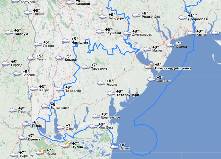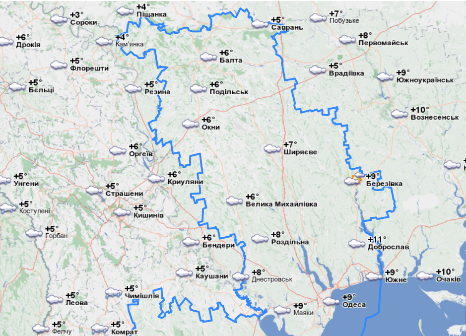 Температура вночі на заході, Вінницькій та північних областях коливалась від 1° тепла до 4° морозу, в той час, як на решті території стовпчик термометра показував 2-7° тепла. Удень очікується 4-9° тепла, а в південній частині країни можна очікувати до 12°.