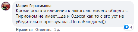 Епічно про своє повернення до Одеси заявив чоловік, перевдягнений у Тіріона Ланністера - персонажа романів американського письменника-фантаста Джорджа Мартіна. Йдеться про 2 героїв циклу романів "Пісня льоду та полум'я". На основі цих творів компанія HBO зняла серіал "Гра престолів", який став культовим одразу після виходу. Днями у мережі з'явилося відео, де чоловік говорить, що він Тіріон Ланністер і планує повернутися в Одесу. Мовляв, неможливо терпіти все те, що коїться в місті і радив Геннадію Труханову “відступити по-хорошому”.