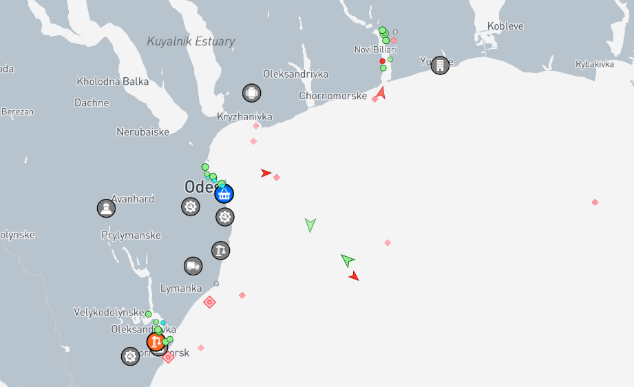 Наразі відомо, що в порту Одеси стоять 11 суден, ще 19 — у Чорноморську, та 10 — у Південному. Відомо, що серед усіх суден є 4 хімічні танкери. Також є інформація, що на вихід з портів прямують 4 суден, а на вхід — 2.
