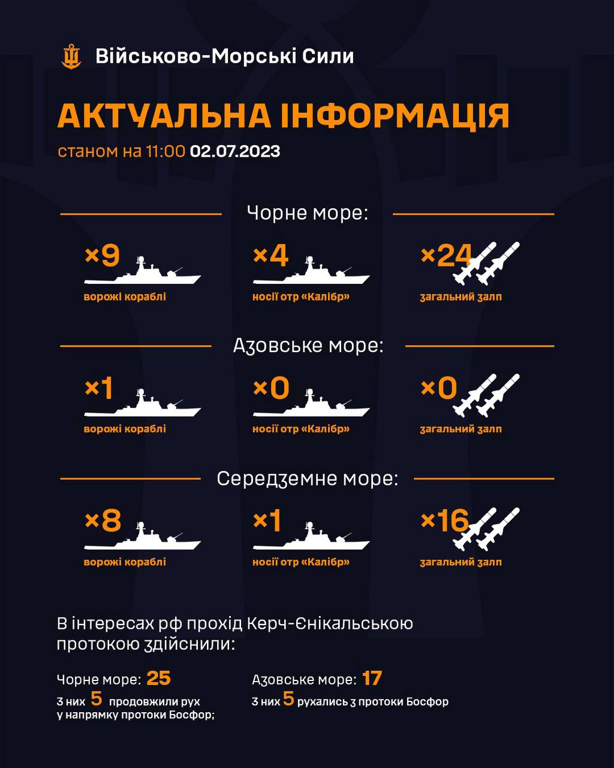 Кількість кораблів РФ у морях. Фото: ВМС ЗСУ