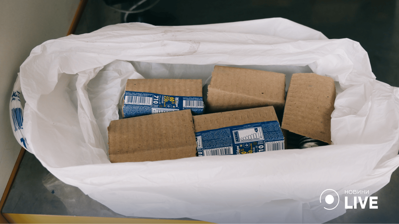 Одна такая упакована и ждет переработки. Наташа говорит, что одесситы приносят на обмен старые LED, а также декоративные и обычные лампочки.