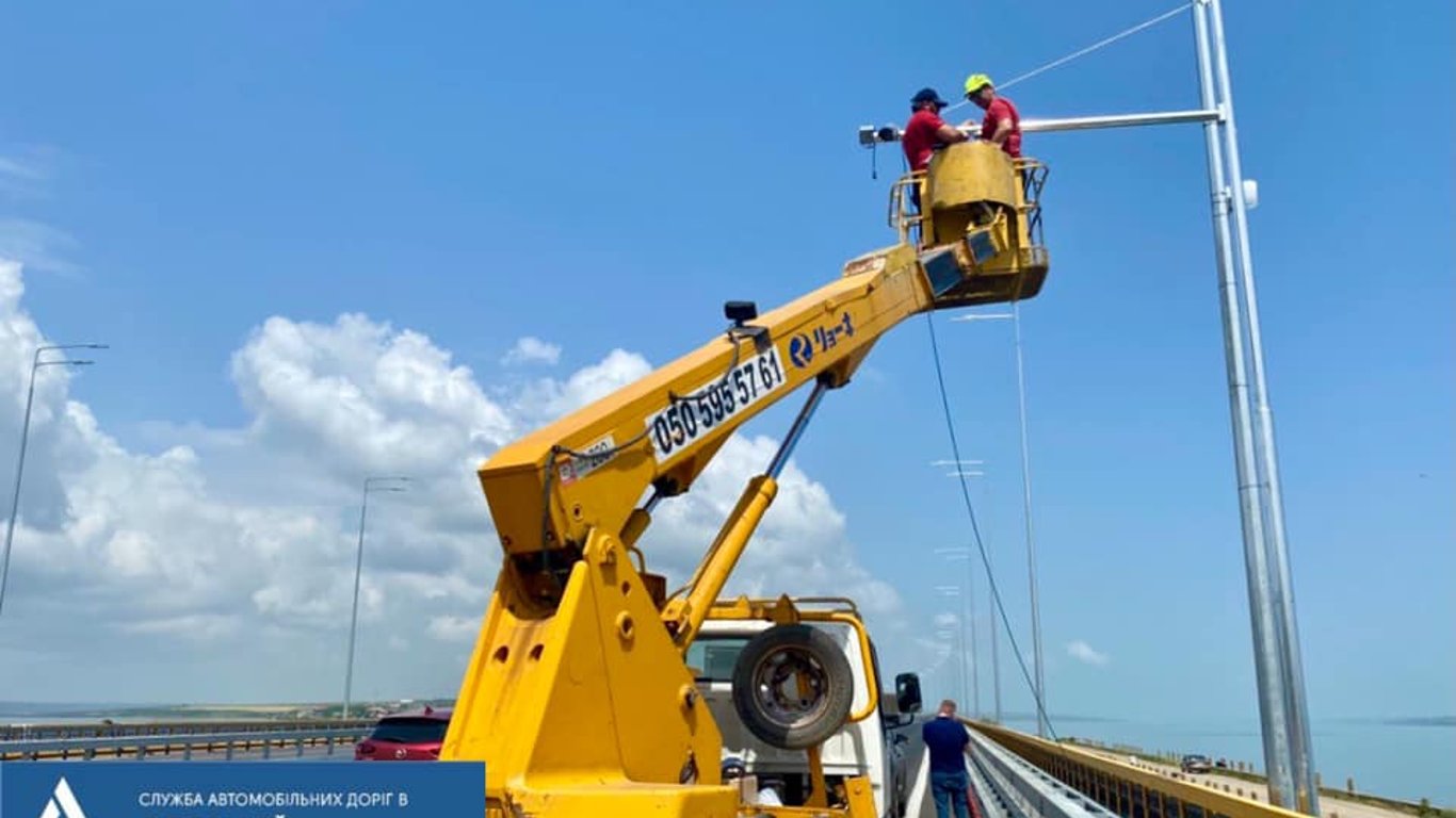 На мосту через Хаджибейский лиман продолжается монтаж системы Weight-in-Motion (WIM), которая будет отслеживать нарушителей установленного весового режима. Она состоит из комплекса камер и оборудования для взвешивания автомобилей в движении и будет автоматически фиксировать фуры с избыточным весом.