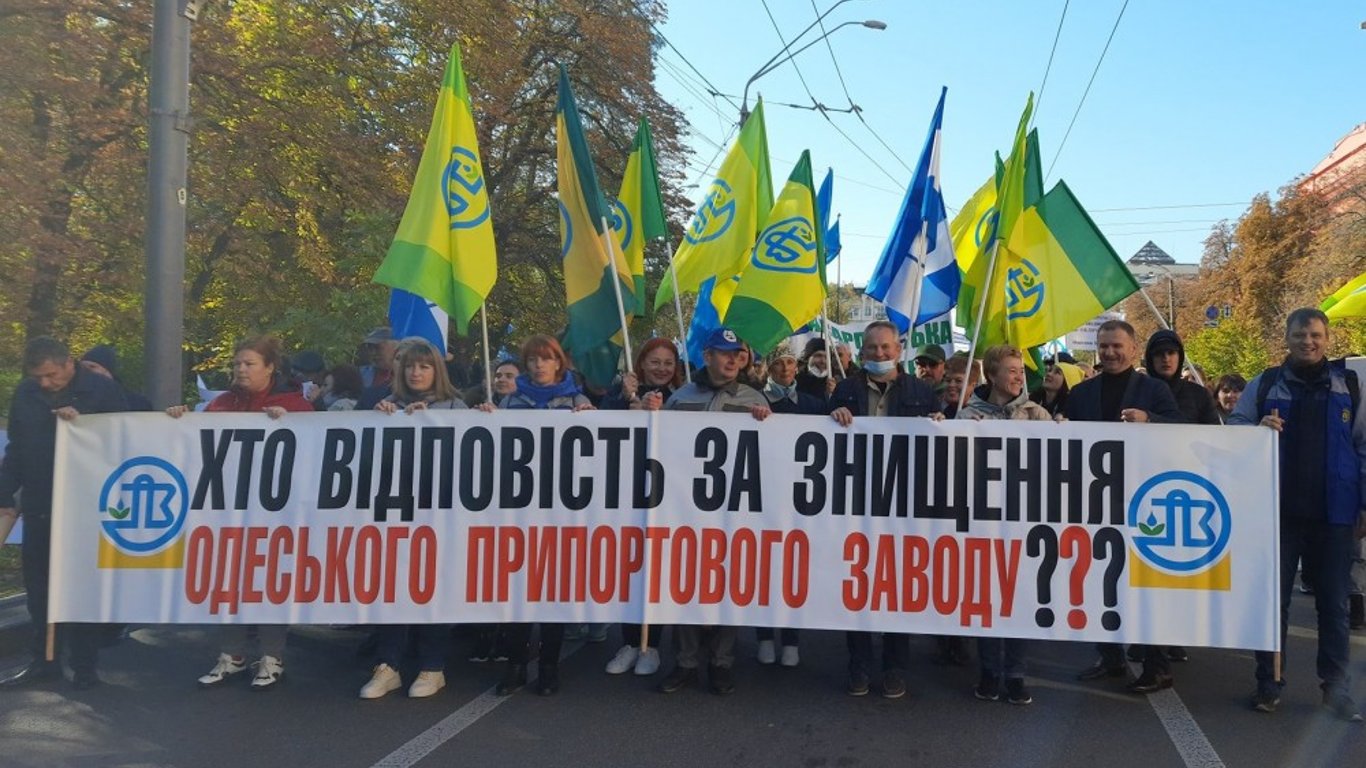 Сегодня, 7 октября, под стенами Кабмина прошли масштабные протесты в рамках всеукраинской акции Федерации профсоюзов Украины. К ней присоединились и работники Одесского припортового завода.