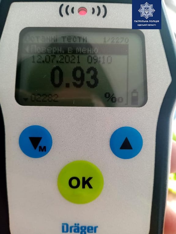Также вчера, на стационарном посту, что на автомобильной дороге М-14 "Одесса – Мелитополь – Новоазовск", патрульные остановили грузовик Renault за нарушение дорожных правил. При составлении административных материалов, полицейские обратили внимание на наличие явных признаков алкогольного опьянения у водителя. 27-летнему водителю предложили пройти осмотр с помощью прибора Drager и результат составил 0,9 промилле.