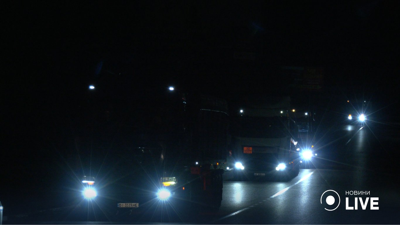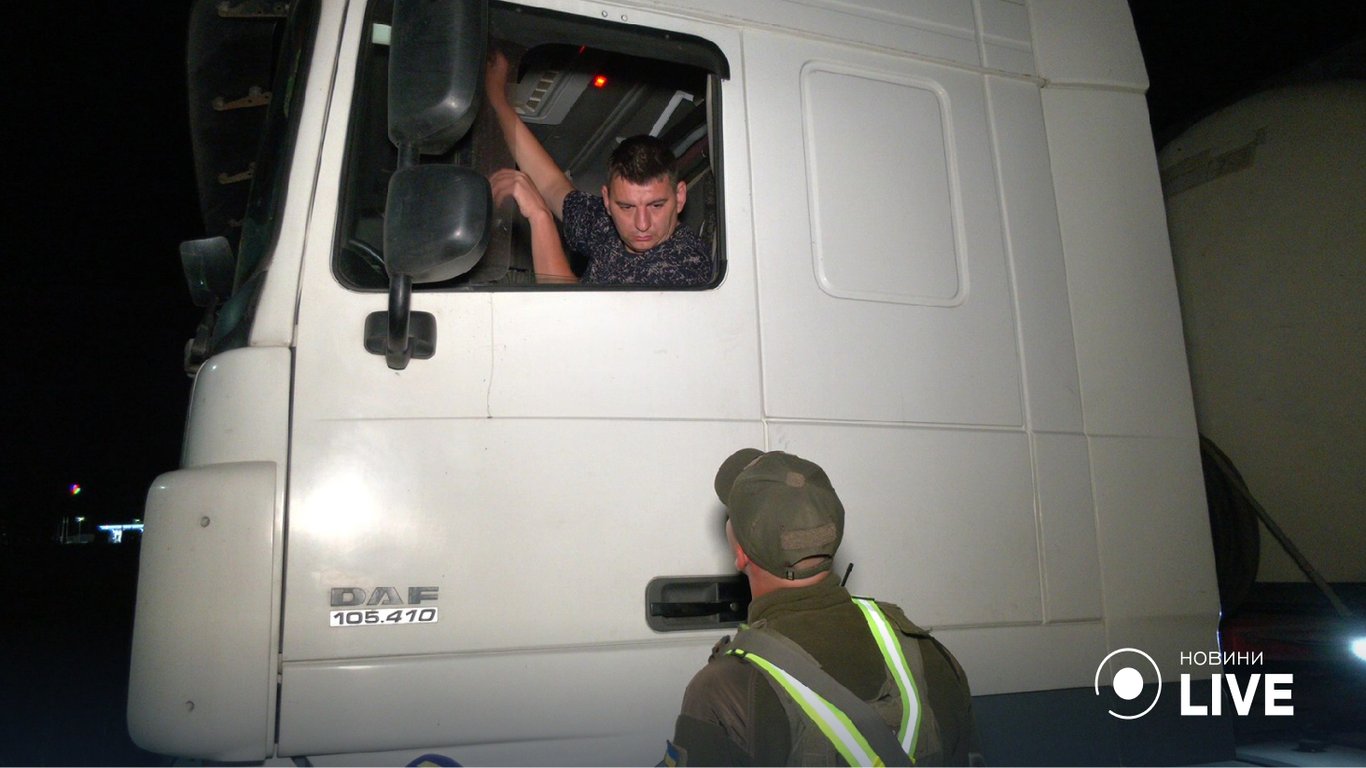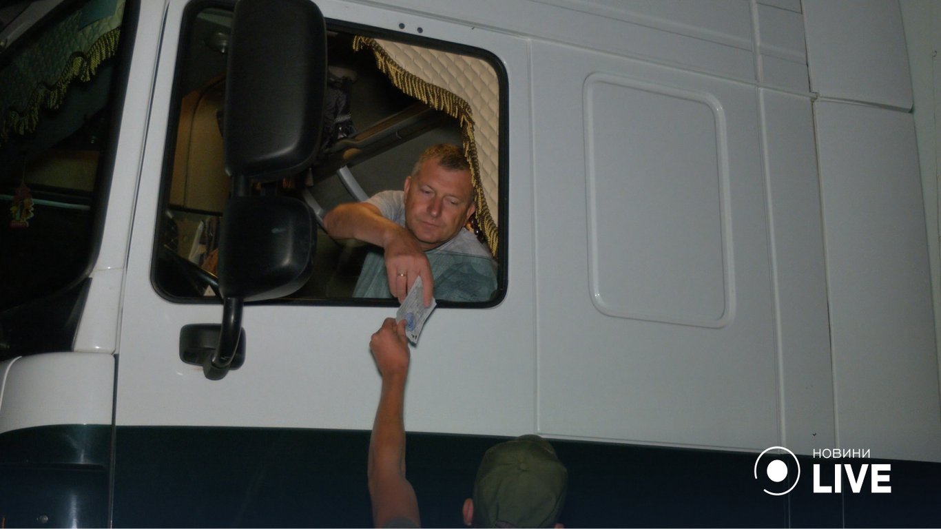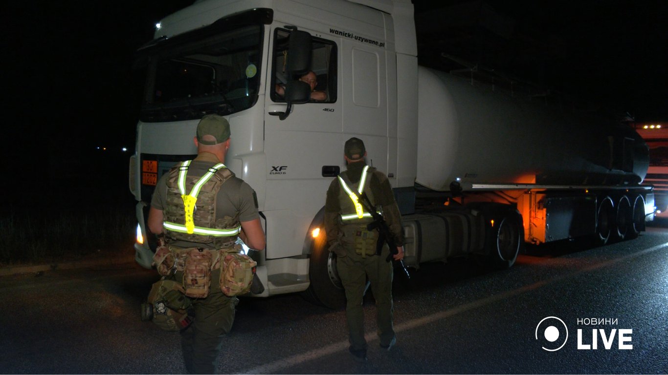 Грузовики едут ночью. Фото: Новини.LIVEПроверка пропуска у водителя. Фото: Новини.LIVE