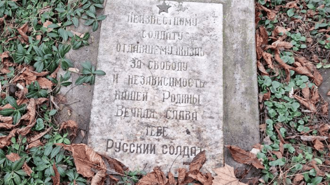 Памятник неизвестному солдату обнаружили местные на территории Селекционного института, в нескольких десятках метров от мемориальной доски с именами погибших во время Второй мировой войны. Возмутила активистов надпись на каменном монументе: "Неизвестному солдату, который отдал жизнь за свободу и независимость нашей Родины. Вечная слава тебе, русский солдат".