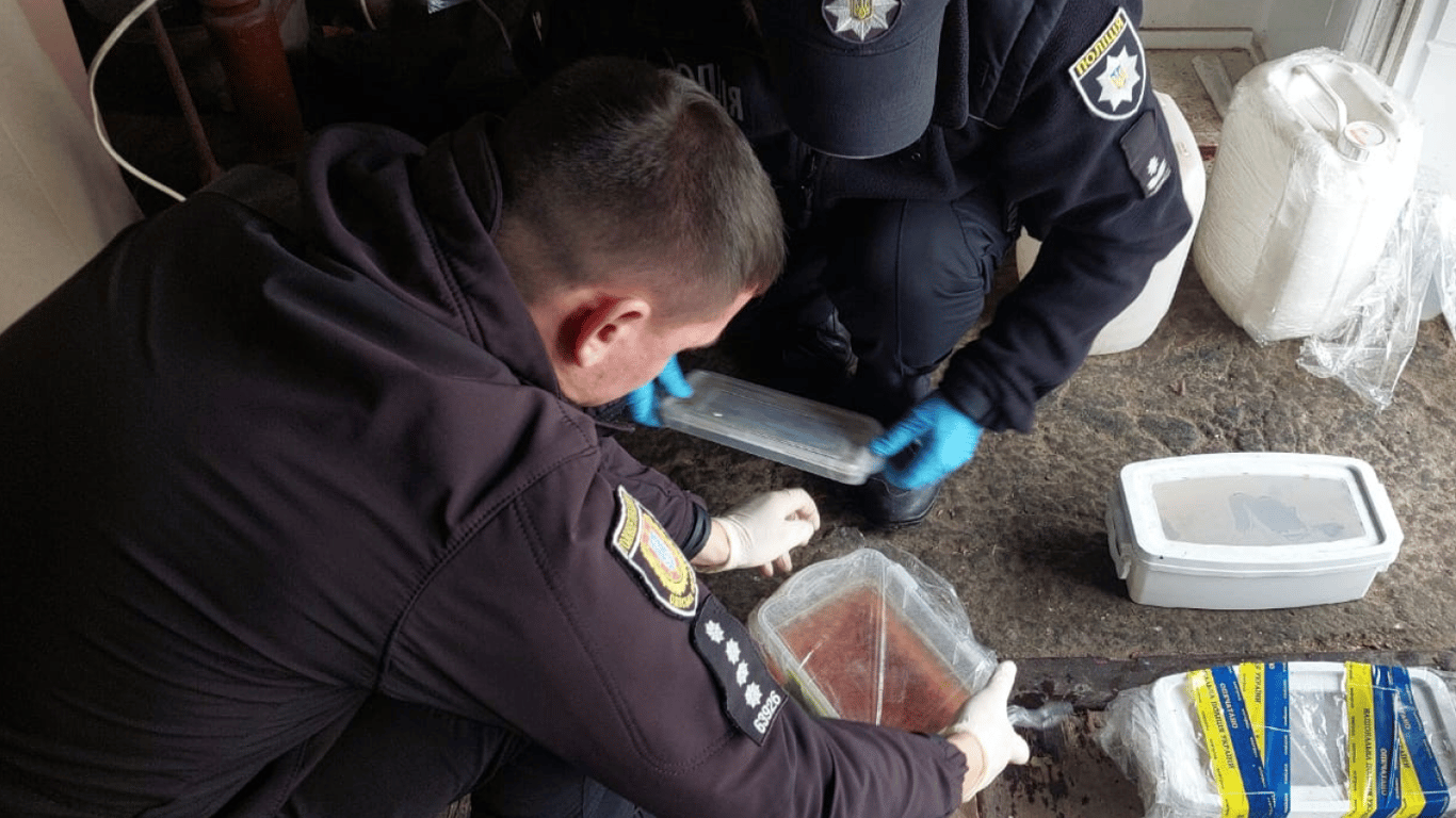 Полиция осматривает материалы по изготовлению наркотиков. Фото: Нацполиция