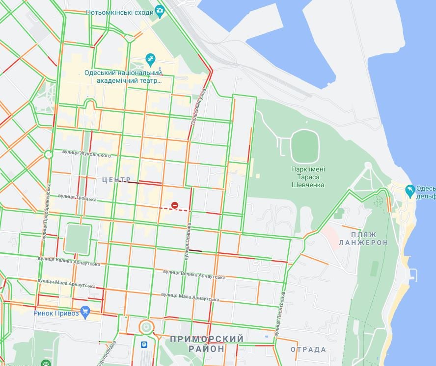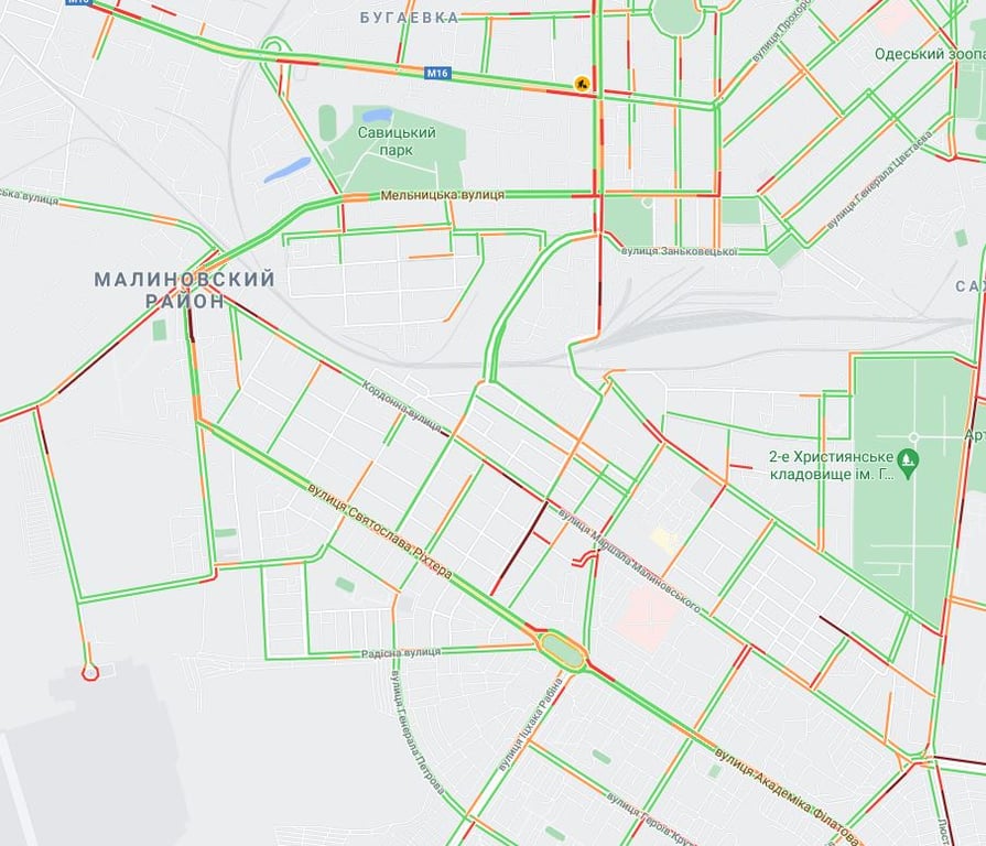 В Малиновском районе осложнения движения ощущаются на Спартаковской, Малиновской, Центральном аэропорту и Овидиопольской дороге. Тянучки наблюдаются на Ицхака Рабина, Краснова и Граничной.