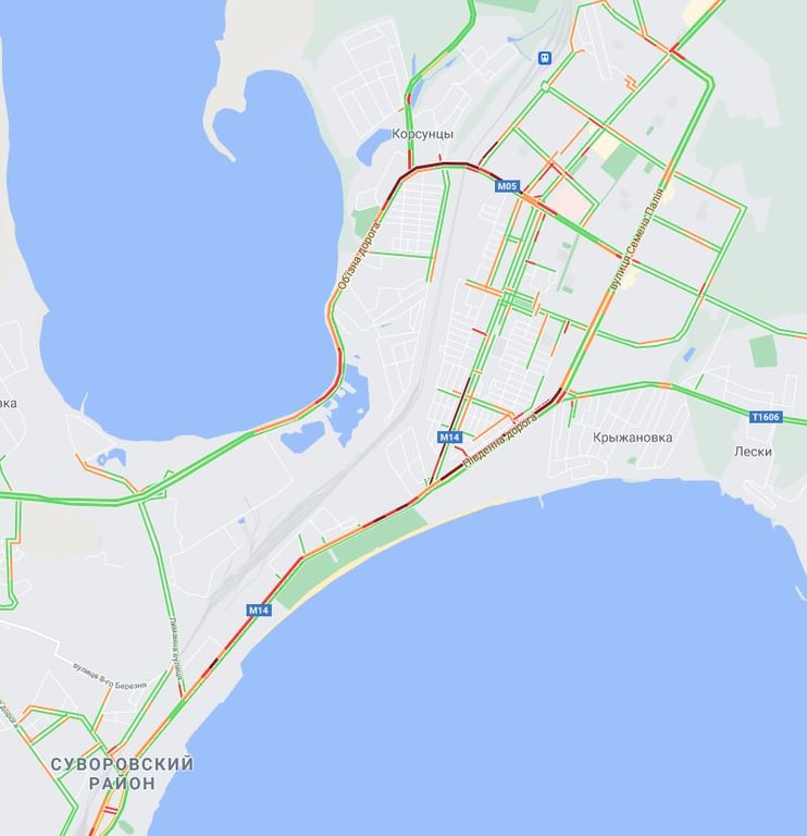 В Суворовском районе пробки ощущаются на Объездной и Южной дорогах, еще они ощущаются на проспекте Добровольского. Усложнение движения можно наблюдать на Академика Заболотного и Семена Палия.