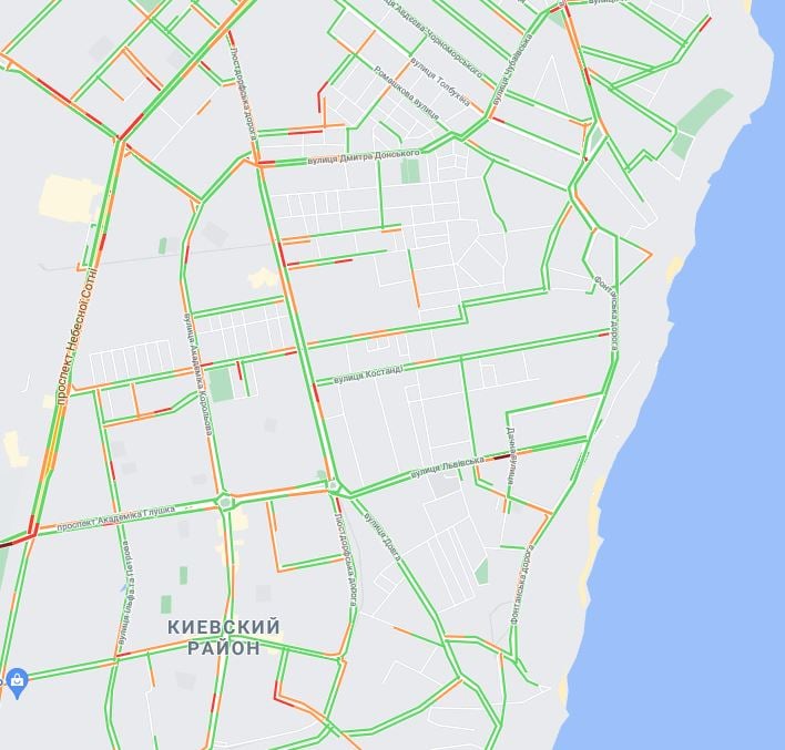 В Киевском районе, как всегда, пробки есть на проспектах Небесной Сотни и Академика Глушко, Люстдорфской и Фонтанской дорогах. Также возможно застрять на улицах Инглези, Левитана, Академика Королева и Костанди.