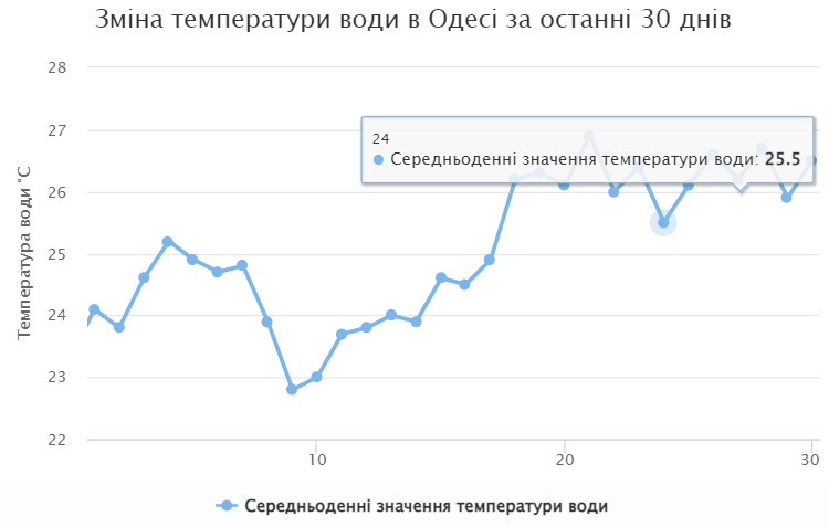 Сегодня температура воды в Одессе составляет 25.8°C. Это самая комфортная вода для купания в любом водоеме, особенно в жаркий день. Данный температурный диапазон признан оптимальным для длительного купания. В любом случае важна и общая погода. Так, температура воздуха одновременно достигнет 28°C.