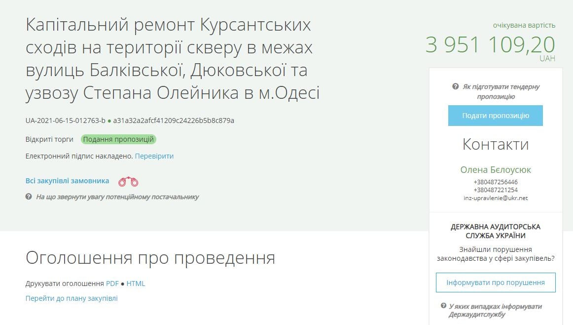Об этом сообщается на сайте государственных закупок ProZorro.