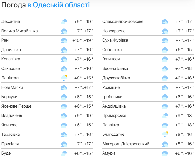 Подробный прогноз погоды в Одесской области. Фото: meteo.ua