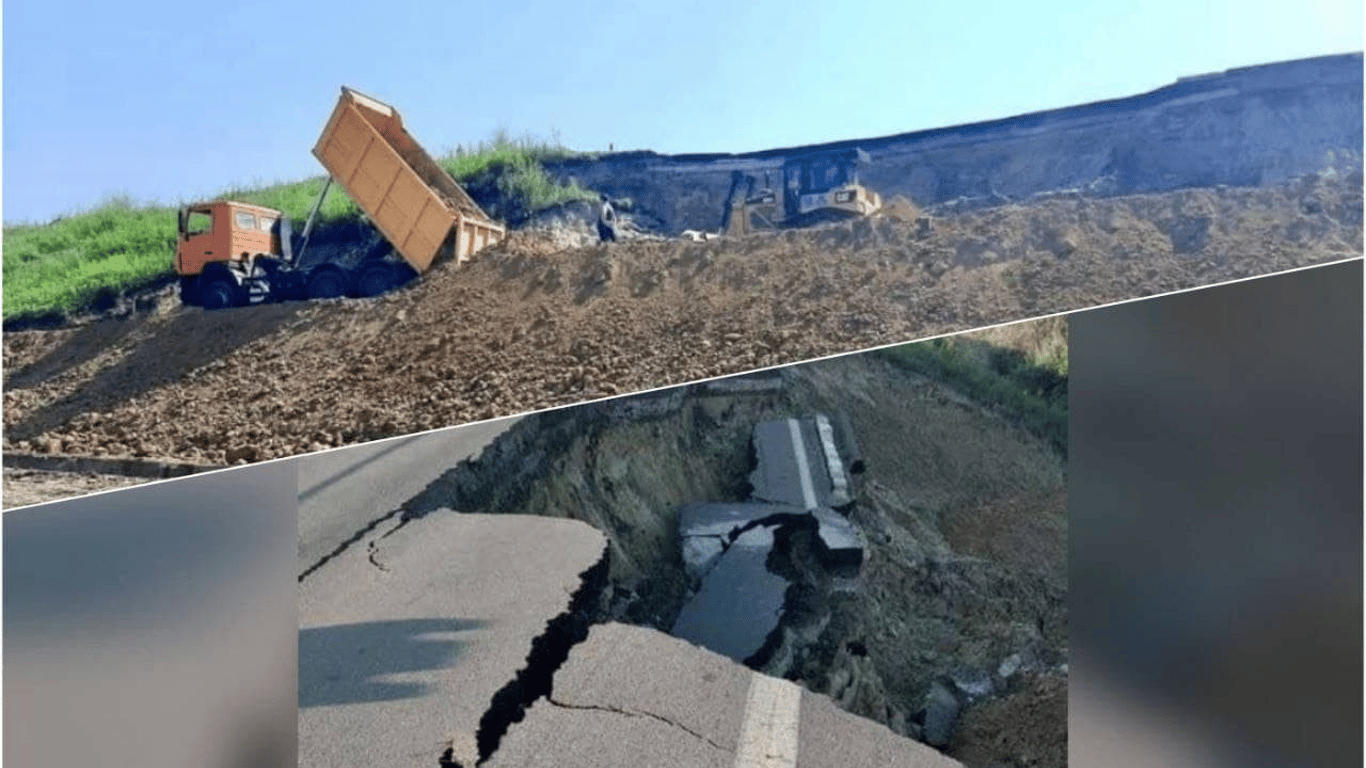 "Разрушение откосов земляного полотна на указанных участках автомобильной дороги М - 05 произошли в результате интенсивных осадков в течение последних трех месяцев и переувлажнения почвы",- заметил представитель Укравтодора.
