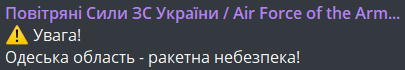 В настоящее время существует опасность для Одесской области. Мониторинговые каналы сообщали о ракете в направлении Затоки, однако позже она изменила свою цель к югу области. Советуем не покидать укрытие до отбоя.
