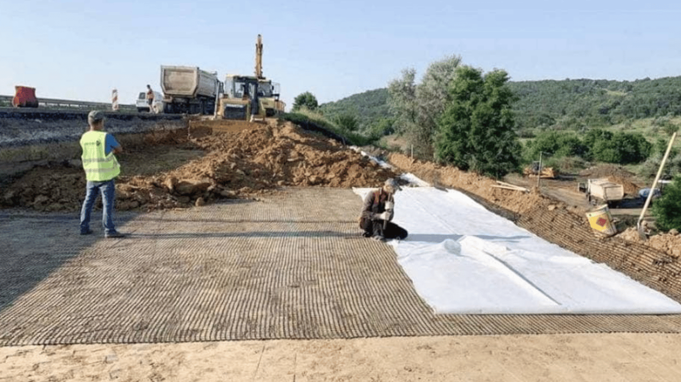 Участок на трассе Киев – Одесса, где произошел оползень 15 июля, продолжают ремонтировать. По состоянию на 26 июля на дороге неподалеку от села Троицкое устанавливают геотекстиль, который должен предотвращать эрозию почвы.