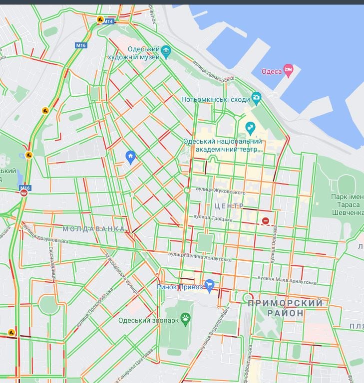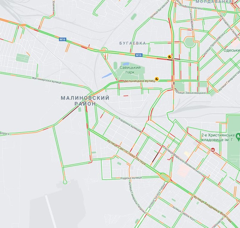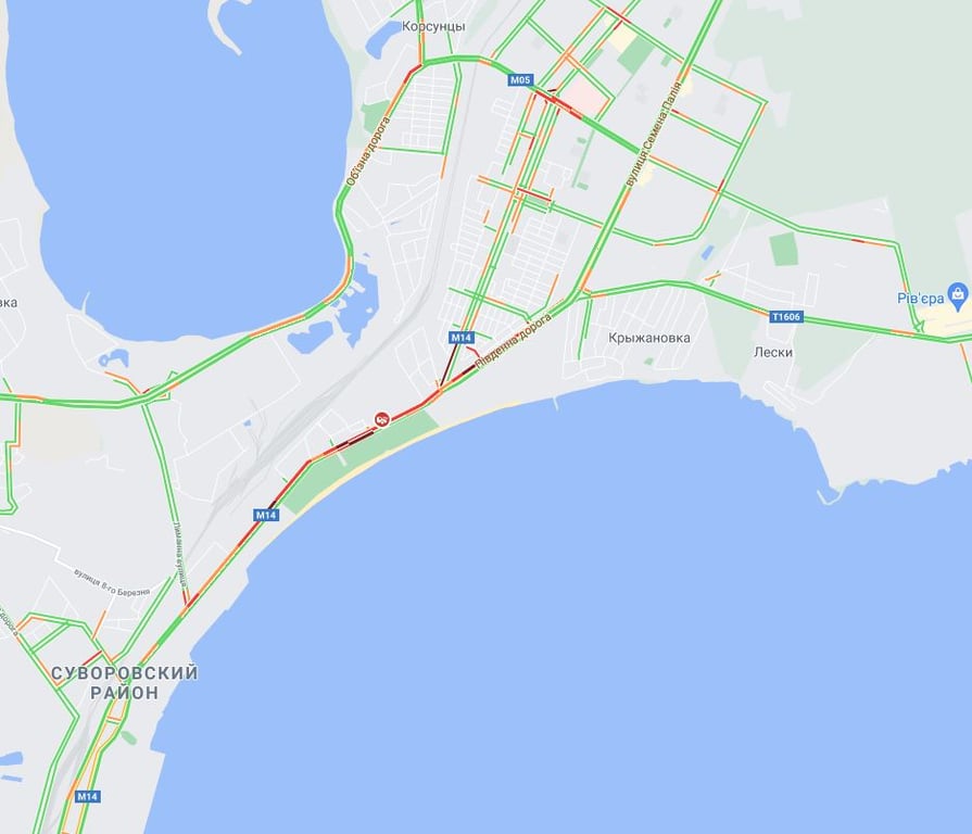 В Суворовском районе пробки ощущаются на Объездной и Южной дорогах, еще они ощущаются на проспекте Добровольского. Усложнение движения можно наблюдать на Академика Заболотного и Семена Палия.