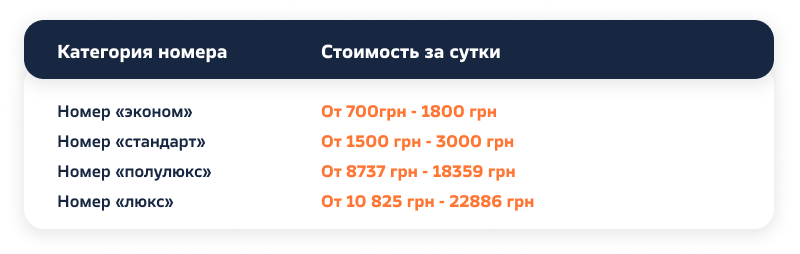 Стоимость номеров в отелях
