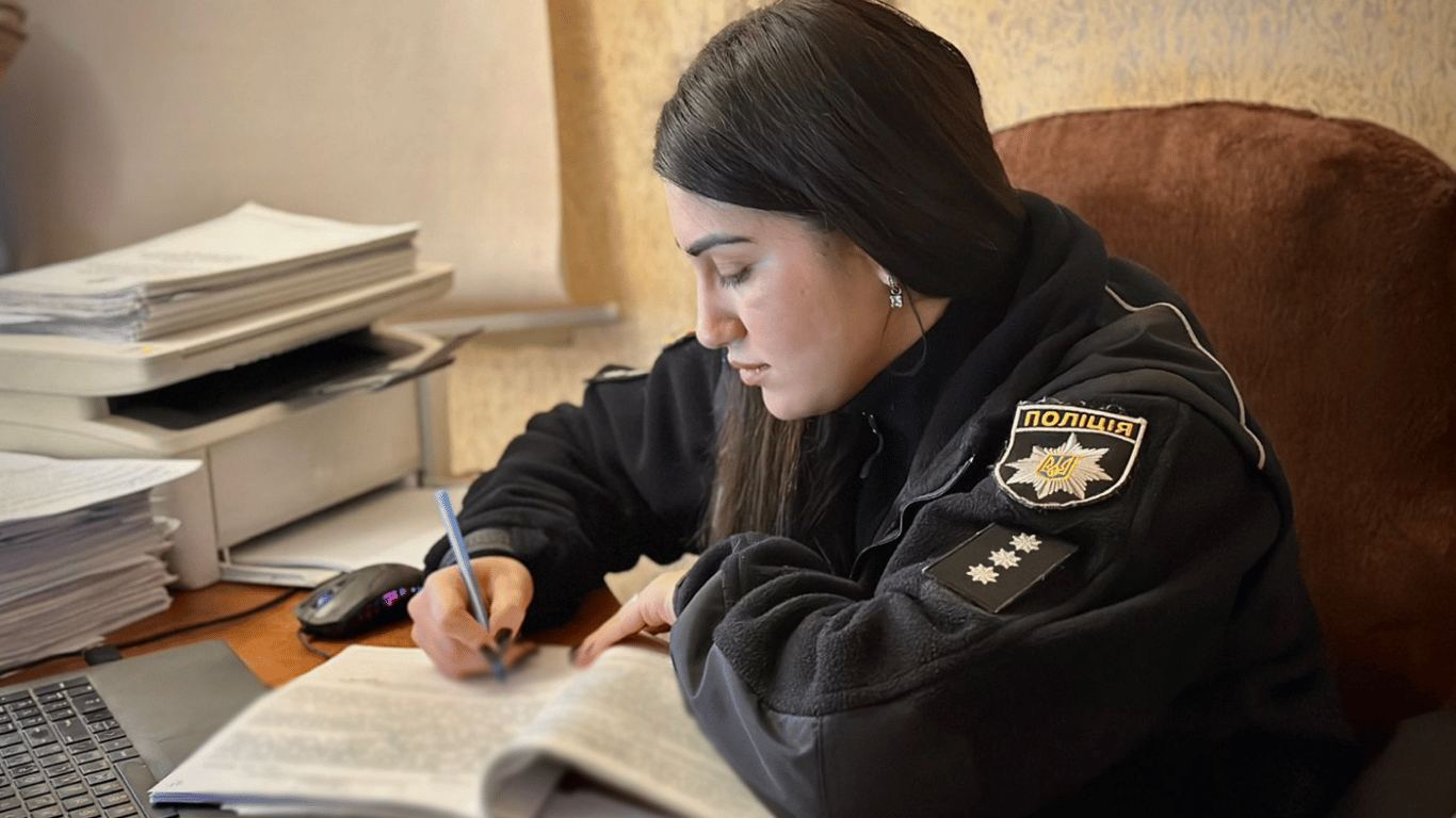 Полицейская заполняет документы. Фото: полиция Одесской области