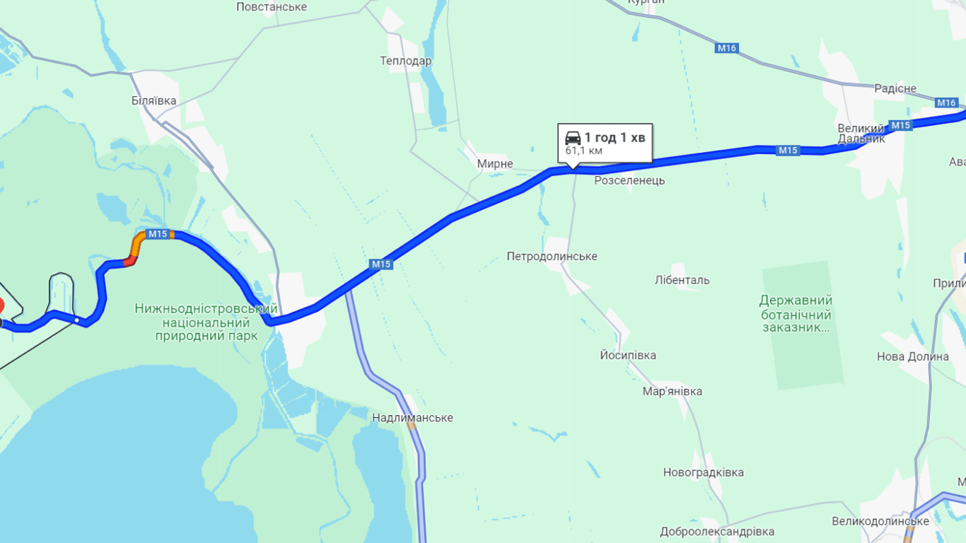 Сейчас в сторону пункта пропуска "Паланка — Маяки — Удобное" есть пробка в районе Маяк и КПП. Этот участок на картах обозначен красным цветом. Путешествие в Паланку продлится сегодня более часа. На самом автомобильном пункте пропуска очереди не наблюдаются.
