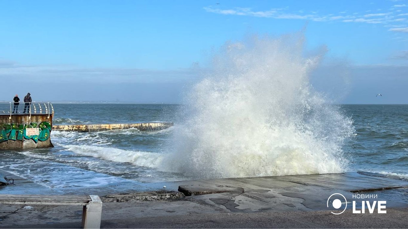 Волны Черного моря уже начинают подниматься 18 января. На побережье можно наблюдать за невероятно хорошим явлением, но только со стороны. Многие одесситы вышли на прогулки по Ланжерону.