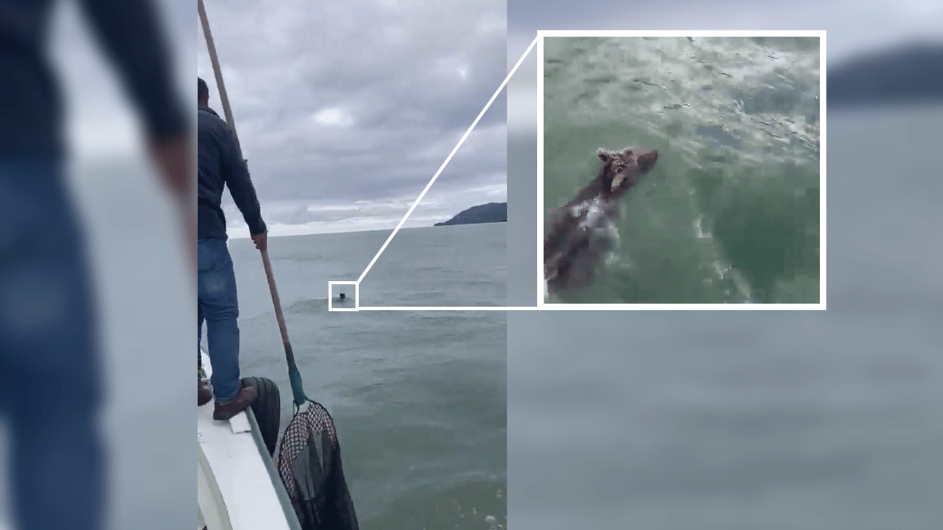 Рибалки врятували ведмедя у Чорному морі, який плавав у 200 метрах від берега поблизу міста Гіресун на півночі Туреччини. Ведмедик плив далеко від берега. Люди підібралися на човні, сачком витягли його з води й відвезли на сушу.