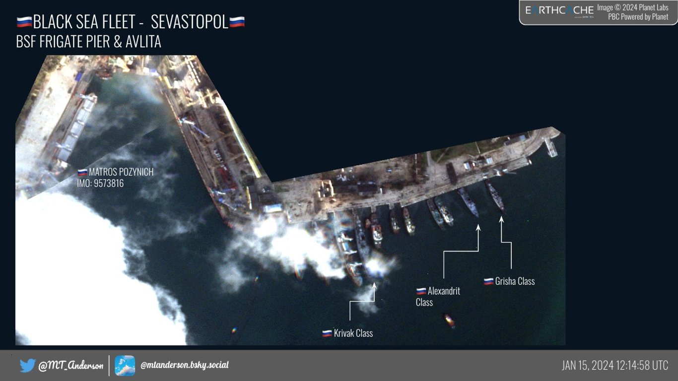 Крім того, на ремонті у сухому доці Севастополя залишається корабель "Ростов-на-Дону", а біля нього стоять підбиті "Мінськ" та "Костянтин Ольшанський".