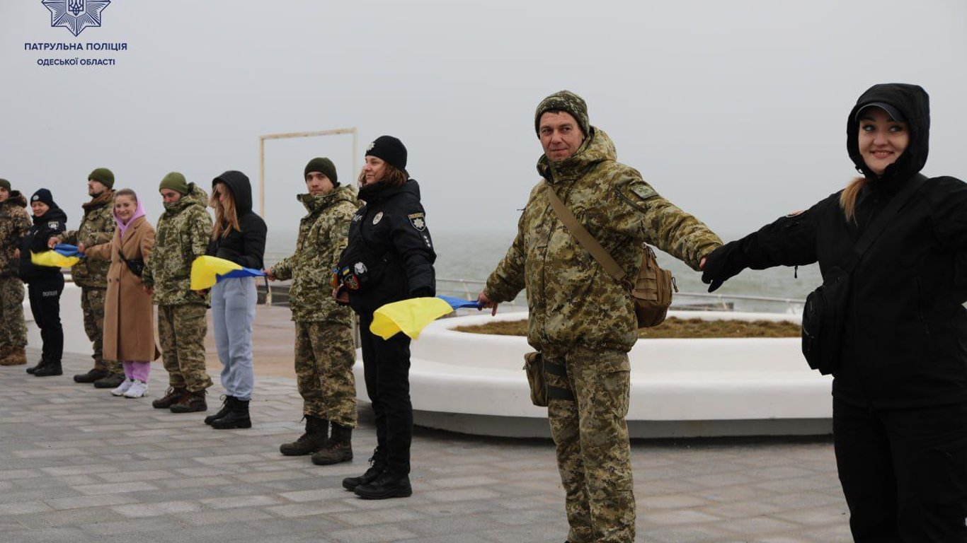 Сьогодні в Одесі з нагоди дня проголошення Акта Злуки та Дня Соборності України місцеві мешканці та військові утворили "живий ланцюг", який символізує єдність нашого народу. Традиційний захід цього разу відбувся на набережній "Ланжерону".