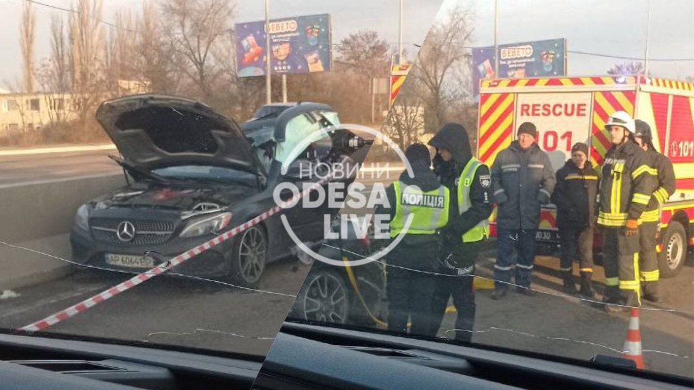 Трагедія сталася на в'їзді до Одеси, неподалік кафе "За кермом". Водій Mercedes влетів у сріблясту автівку бренду KIA. Удар був такої сили, що машина вдарила евакуатор, який своєю чергою влетів у фуру, а наприкінці Mercedes кинуло у відбійник.