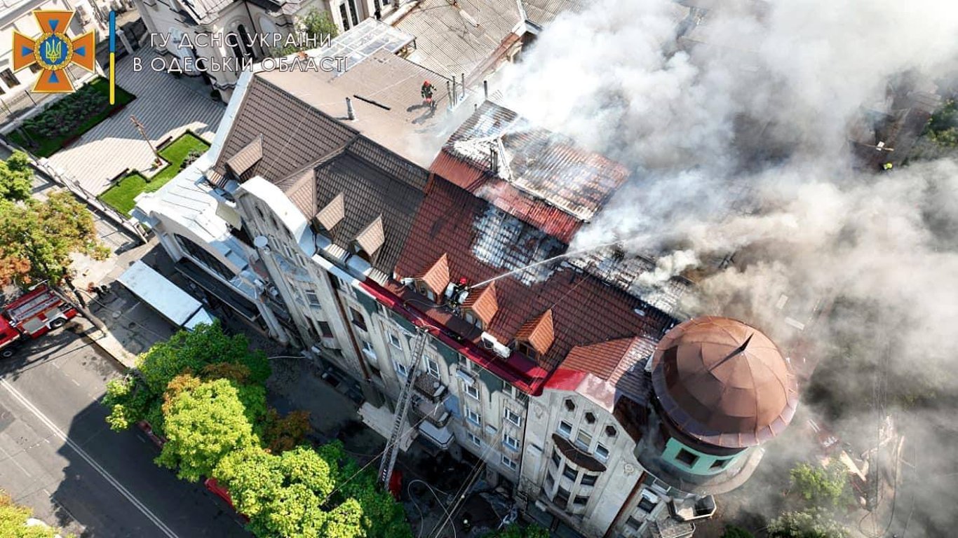 "Є складність гасіння пожежі через складне планування верхніх поверхів та мансарди, та немає доступу до усіх приміщень. За інформацією, люди можуть знаходитись на верхніх поверхах. Рятувальники зараз шукають людей та продовжують гасити пожежу", — зазначила речниця ДСНС в Одеській області Марина Мартиненко.