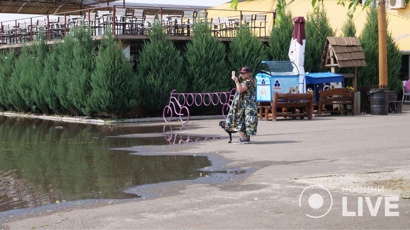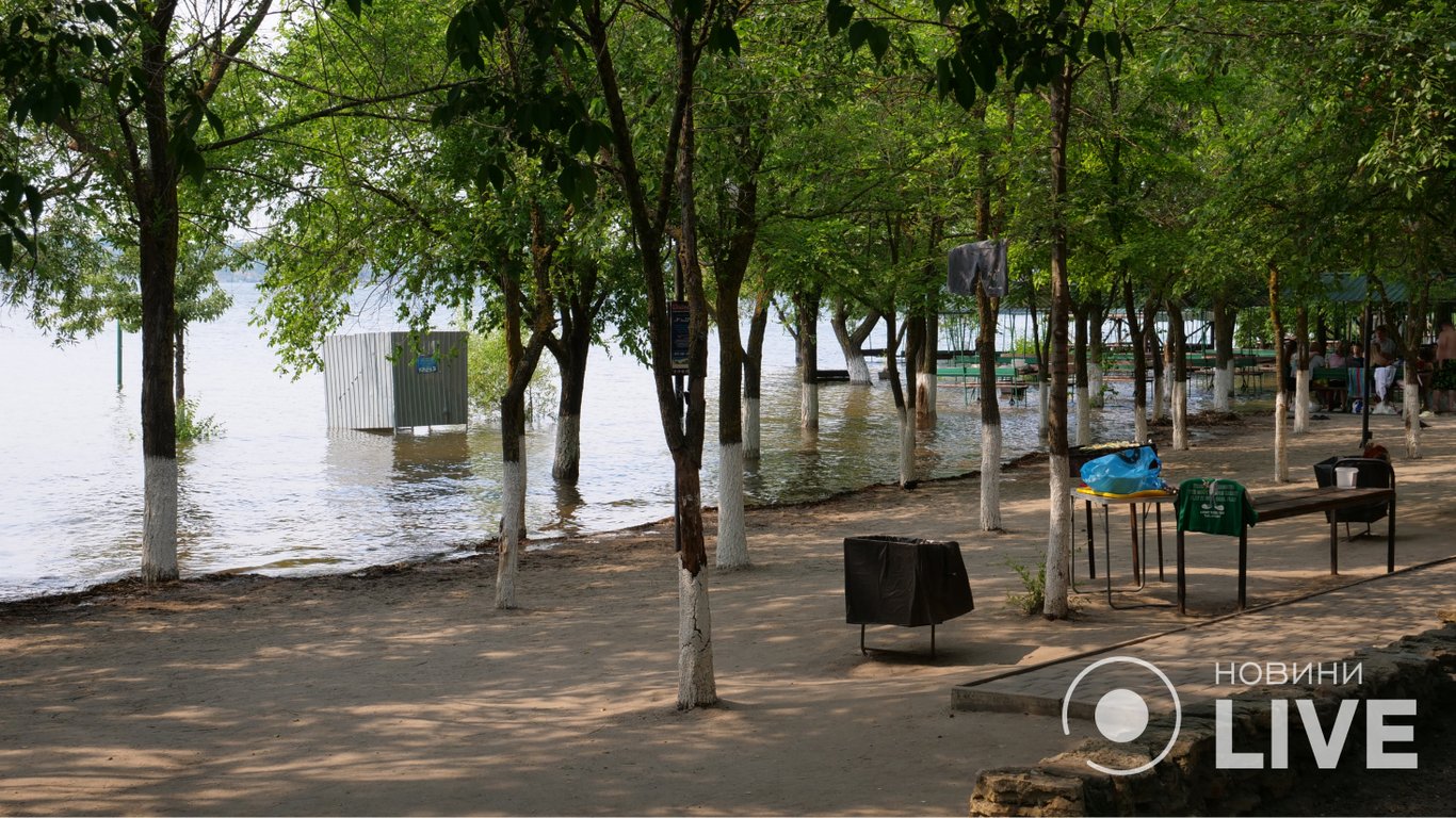 Частково під водою опинився і парк біля вулиці Лазурної. Місцеві кажуть, що вранці до зеленої зони в деяких місцях неможливо було зайти. Зараз тут перша лінія альтанок повністю пішла під воду, навіть дахів не видно.