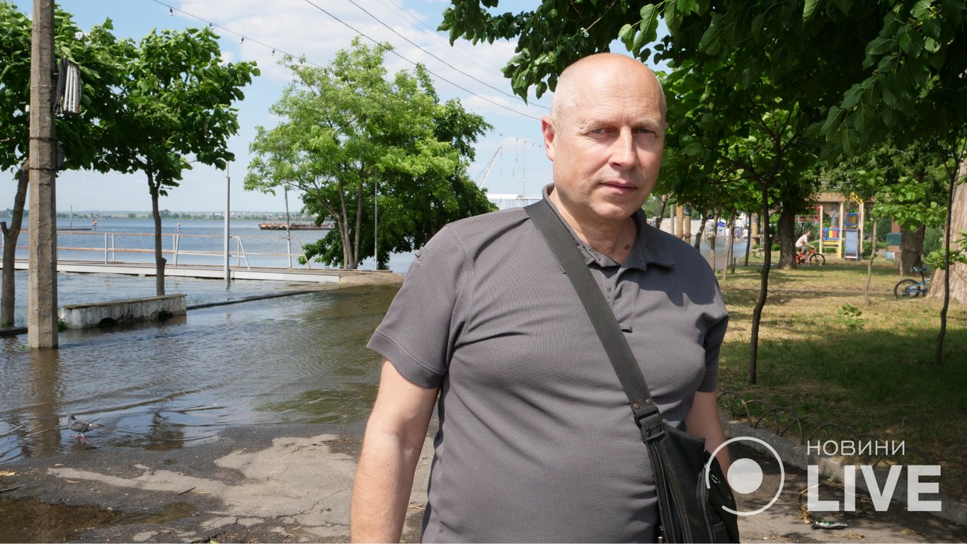 "Ось це, мабуть, найнижче місце, все інше вище, тому самому Миколаєву нічого не загрожує, він сам на пагорбі. Там, де підмиває ґрунт, на "Намиві", теж далеко до будівель, так що тут поки що все гаразд. Я думаю, що якщо вона підніметься ще на пів метра, то це максимум трохи затопить цей парк. До житлових будинків потрібно, щоб вода піднялася метрів на п'ять", — каже Андрій.