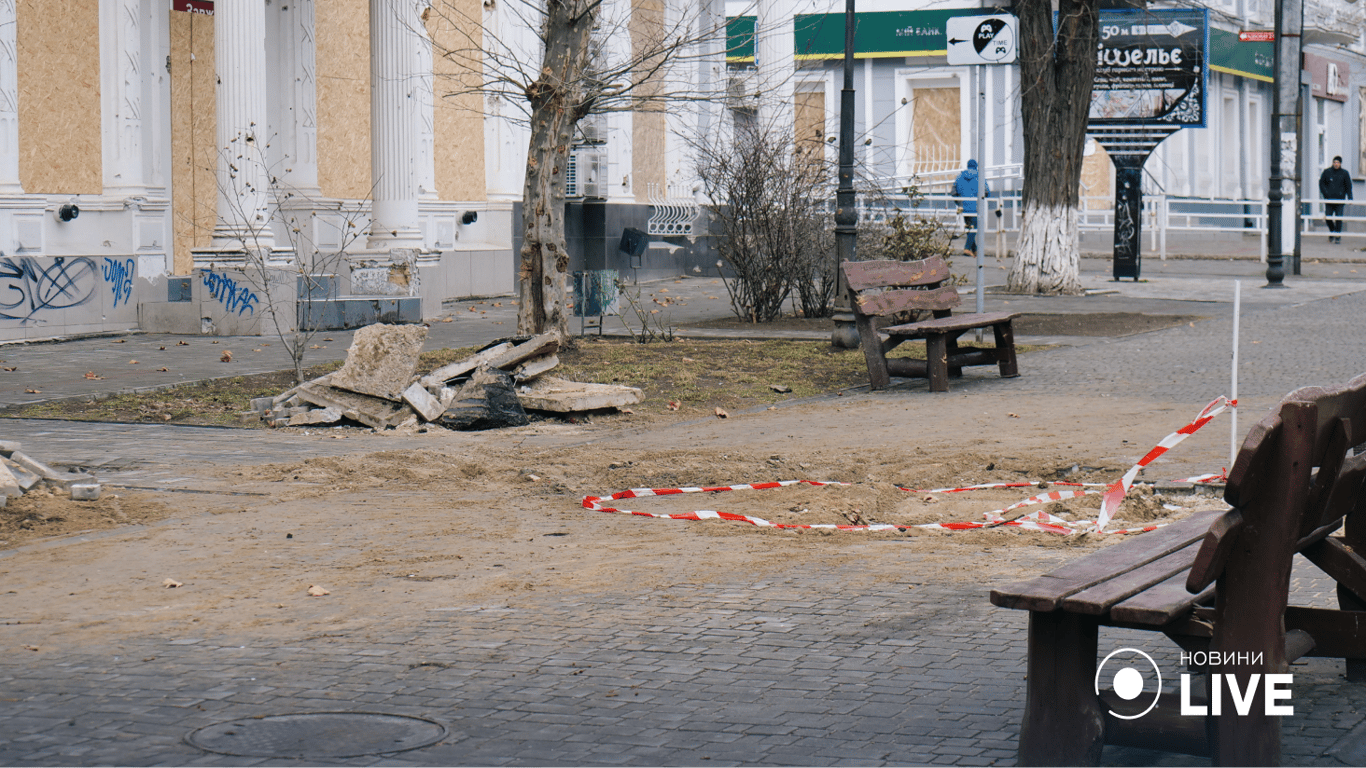 Волонтер Сергій показує місце нещодавнього "прильоту" просто посеред центру Херсона.