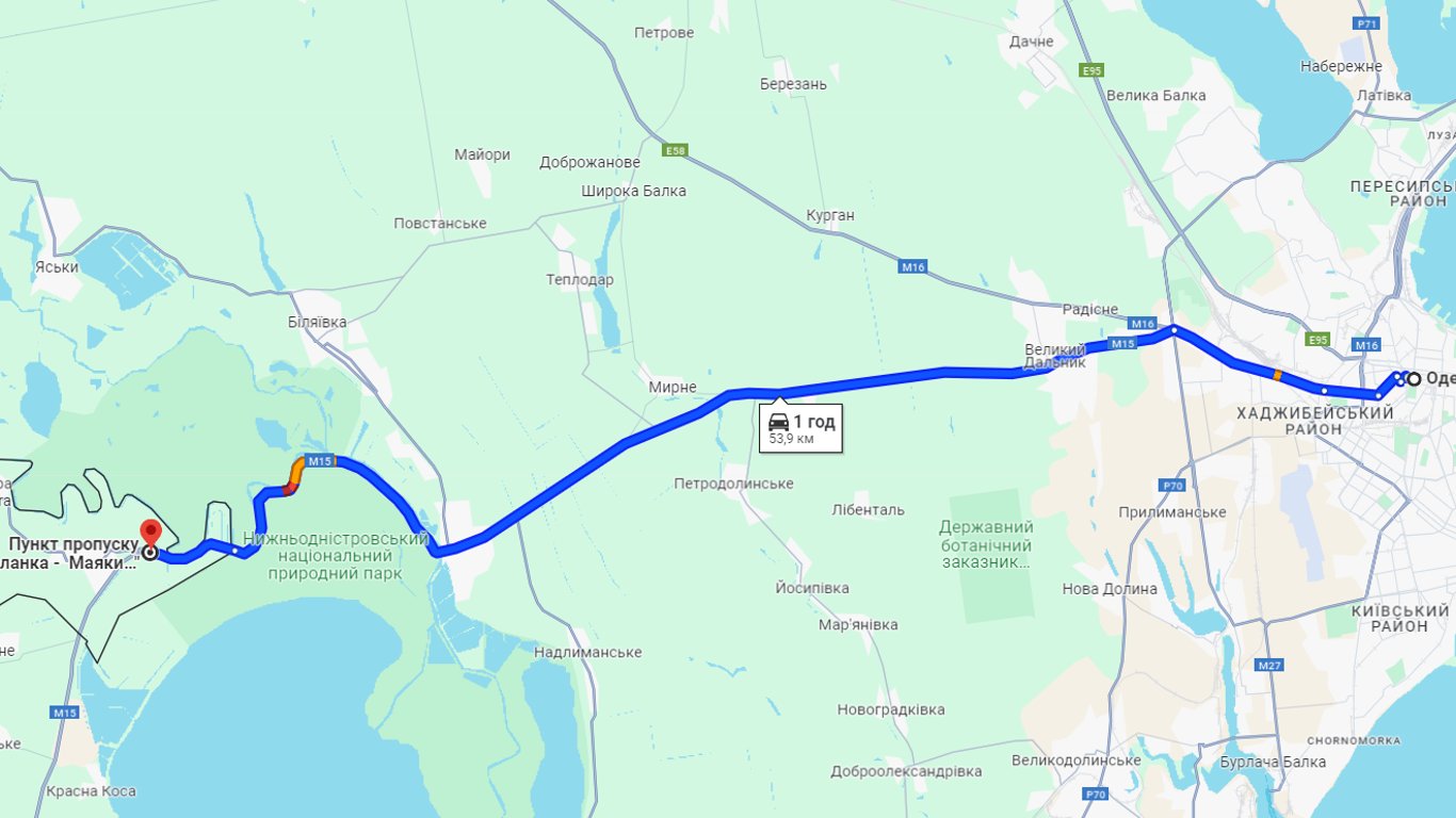 Наразі у бік Паланки є затор на в'їзді в село Паланка. Ця ділянка на картах позначена червоним кольором. Також є затор на КПП у межах Нижньодністровського нацпарку. Перед самим пунктом пропуску — невелика черга.
